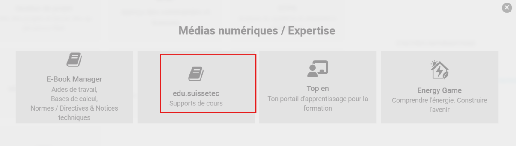 Cliquez ensuite sur la tuile « Médias numériques/Expertise » « E-books Supports de cours ».